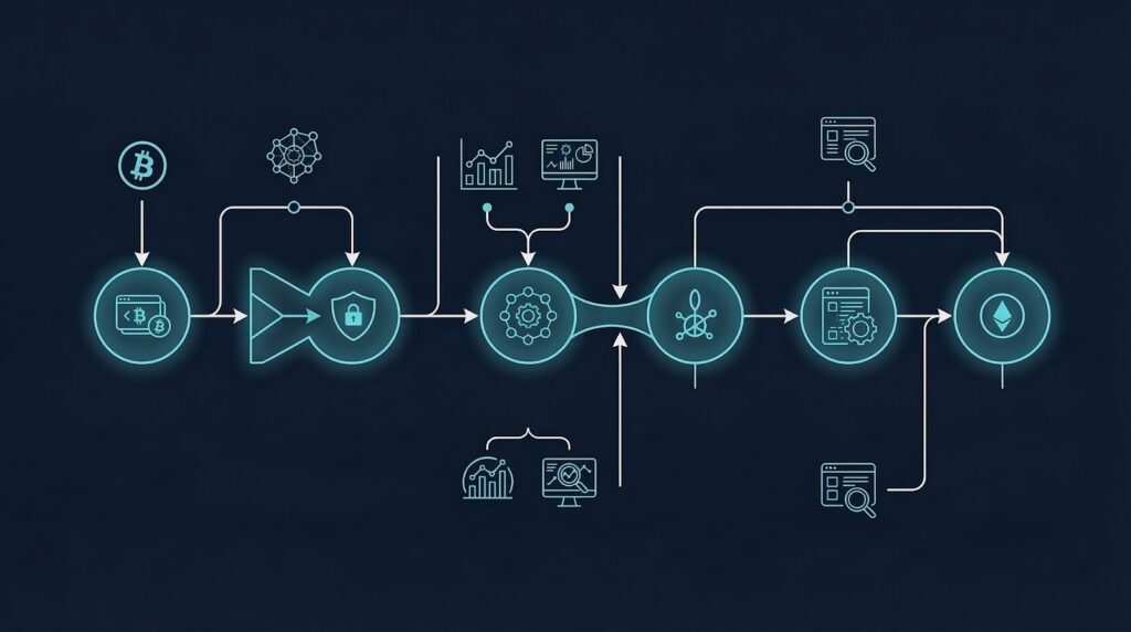 Sidechain transaction analysis is the forensic examination of cryptocurrency flows through secondary blockchain networks operating alongside a primary chain, such as Liquid Network and RSK running parallel to Bitcoin. Investigators trace peg-in deposits, internal sidechain activity, and peg-out withdrawals to reconstruct complete fund movement histories. The process requires visibility across two separate blockchain environments and knowledge of each sidechain’s bridge architecture to maintain evidence continuity from entry through exit.