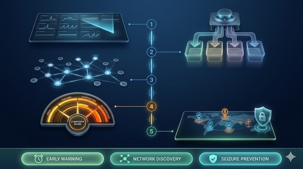 | Panic Pattern Detection | Identify coordinated balance liquidation across address groups | 88-94% | Very High | Low (3-8%) | Network mapping, law enforcement event correlation |