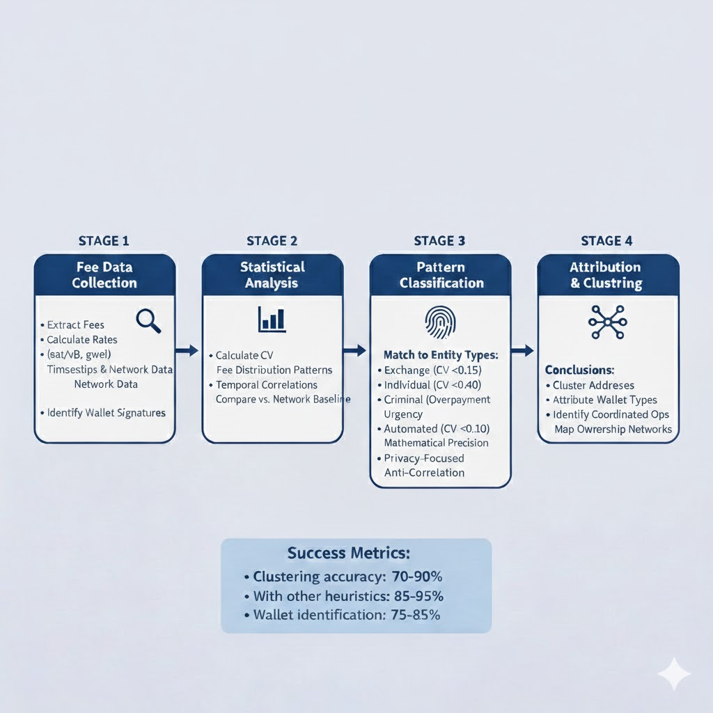 - Combined analysis integrating fee patterns with address clustering and entity resolution
